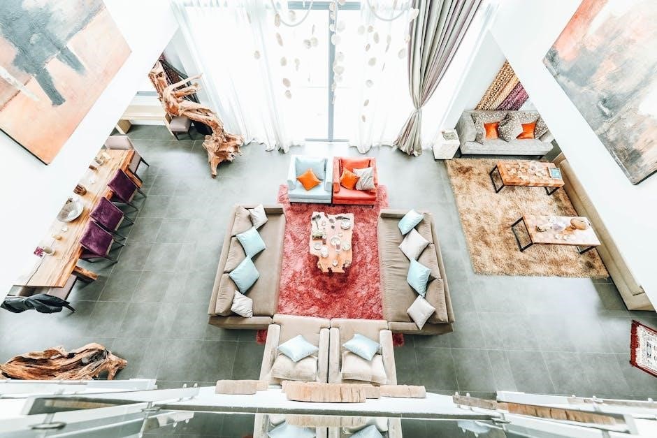 Remember to account for walkways and door swings when visualizing placement, utilizing painter’s tape for a practical preview. Don’t underestimate the impact of material and pile height on comfort and maintenance.