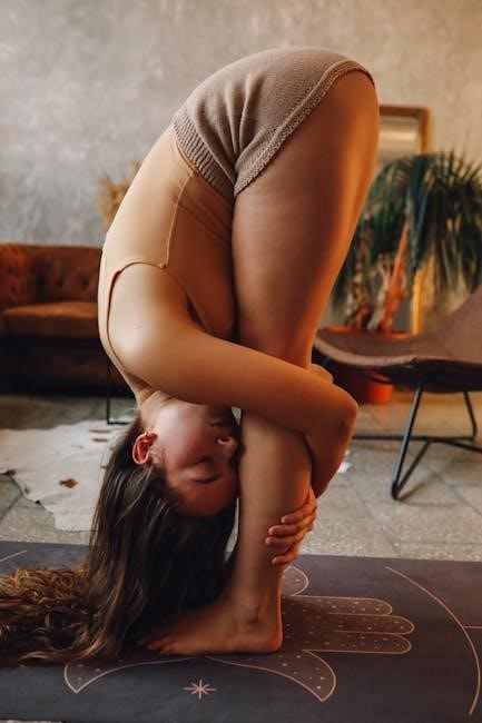 Focus on lengthening your spine with each exhale. Inhale at the bottom, then exhale as you slowly roll back up, stacking each vertebra until you return to a standing position; Many PDFs emphasize controlled movement and proper form over range of motion, especially for beginners. Repeat 8-10 times.
